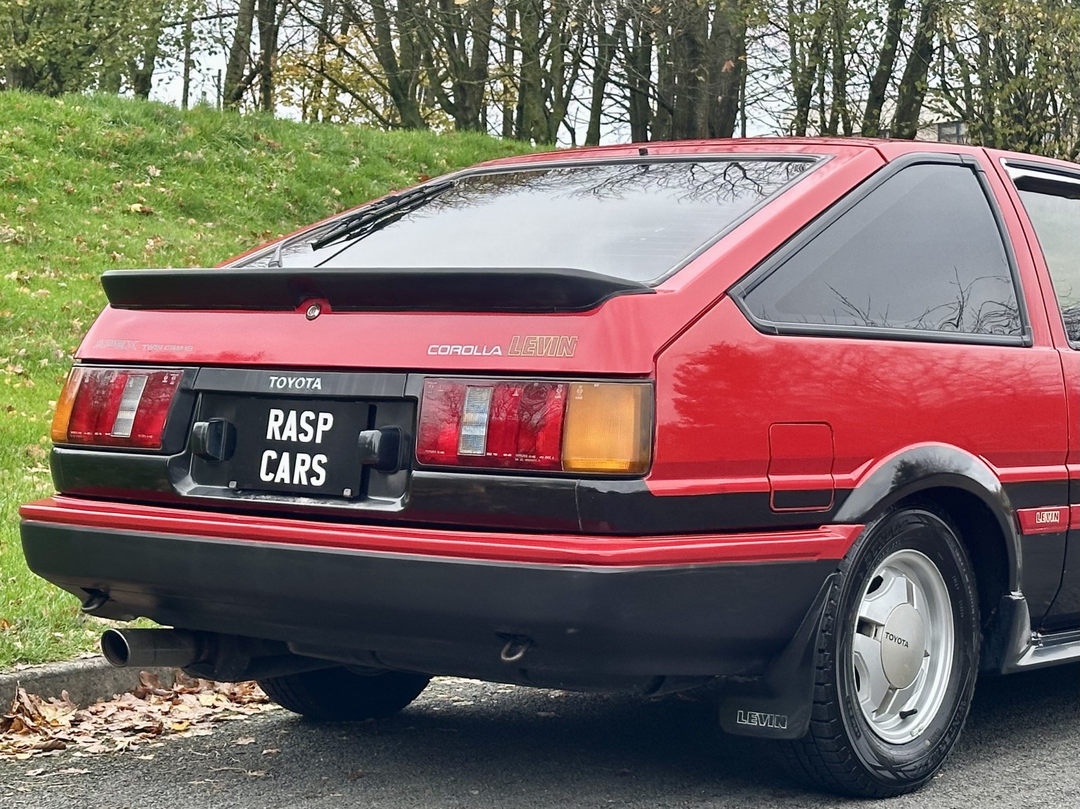 For sale is a Lovely Example of a 1985 Toyota Corolla Levin 1.6 GT Coupe AE86 - Rear Wheel Drive. Finished in Factory Red over Black.